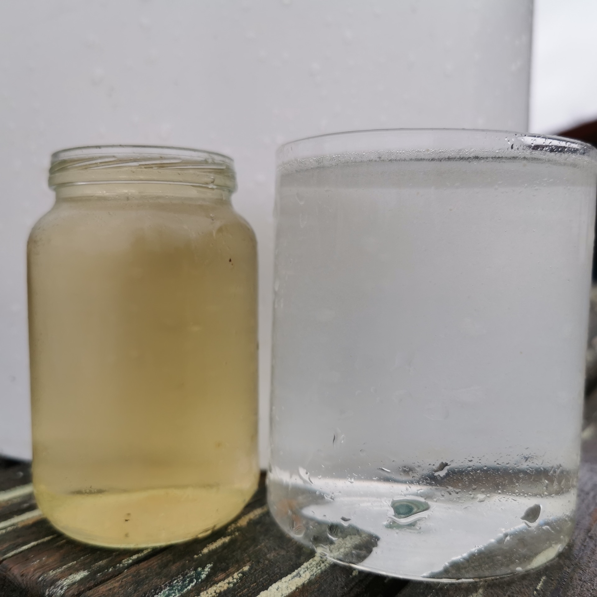 Yrityksemme valmistaa erikokoisia sähköflotaatio -laitteita. Kuvassa on ämpäriin rakennettu laite, vesi on Kyrönjoesta otettua, lopputuloksena on kirkas ja juomakelpoinen vesi. Jätevettä pystymme puhdistamaan, erottamaan siitä ravinteet ja uudelleen käyttämään ne.